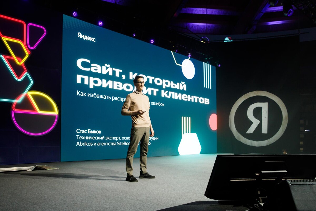 Был приглашенным гостем на бизнес-конференции от Яндекса и выступал перед аудиторией 1500 человек с темой "Как сделать сайт, который приводит клиентов" в Санкт-Петербурге на большой сцене "МТС Live Холл".